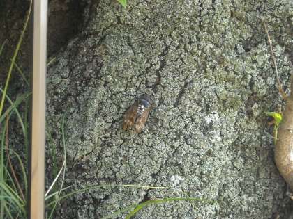 手を伸ばせば届く木の幹にセミが止まっていました。