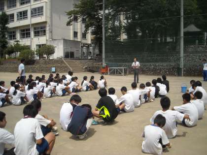 終わったら再度校庭に集合で、校長先生から感謝の言葉です。