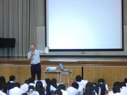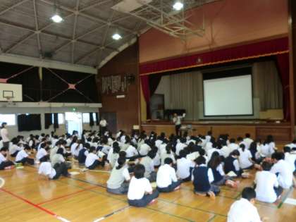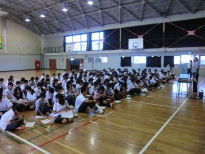 1校時は体育館で「福祉体験」に向けての全体指導が行われました。