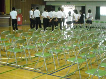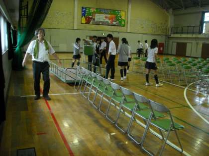 午後に行われる標記の会の準備を3年生の実行委員が行いました。