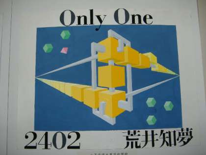 透視図法や投影図法を活用した平面構成と、レタリングによる文字のデザインの総合的作品です。