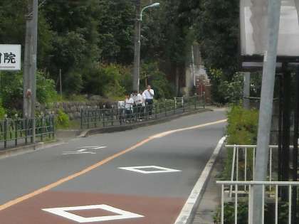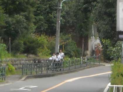 下からも陣馬街道を真っ直ぐ歩いて来る生徒が多いです。