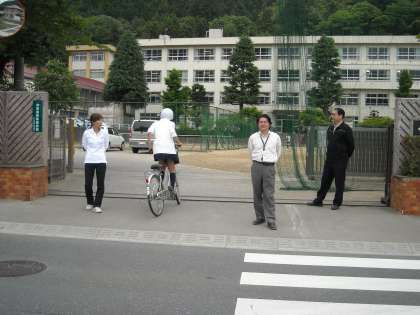 樋口生活保健主任、馬場教務主任、竹信進路学習主任が今日の当番です。