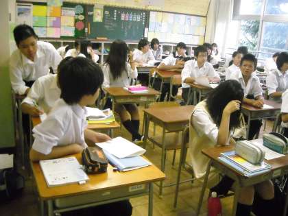 教室で実験の説明を聞いた後、理科室に移動していきました。