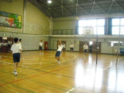男子は体育館の2コートを使ってでバレーボールの試合です。