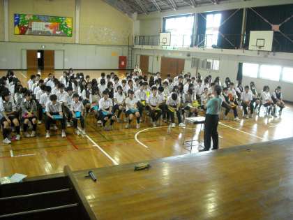 来週に控えた修学旅行のために学年集会を持ちました。