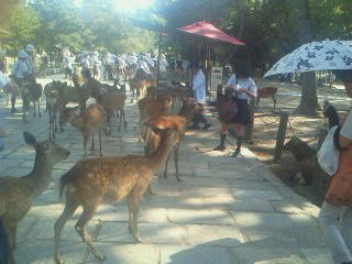 鹿せんべいを買って鹿にやるつもりが鹿に追いかけられています!