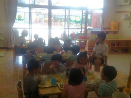 ご飯の時間です。色んなことを手伝ってくれて助かっていると、保育園の方に褒めていただきました。