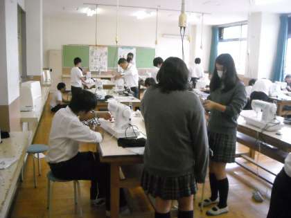 被服室で裁縫をしていました。