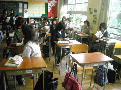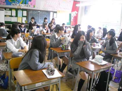 女子は教室で保健の調べ学習について話し合いをしていました。