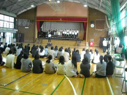 1校時に3年生が合唱祭のリハーサルを行いました。