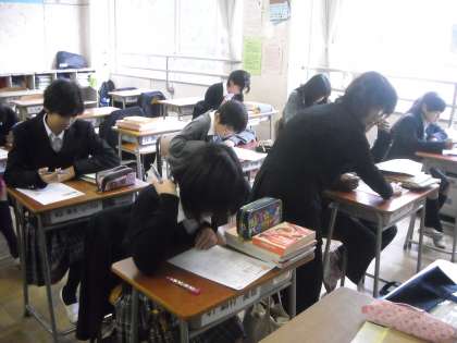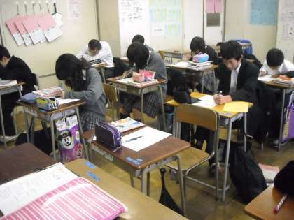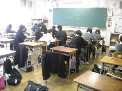 3組ではミラー先生のインタビューと待っている生徒は復習プリントをやっていました。