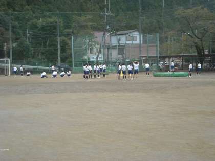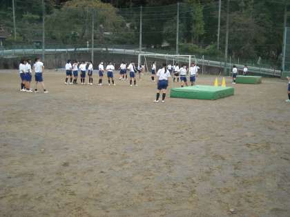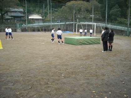 女子は校庭で走り高跳びです。2か所で測定を始めました。