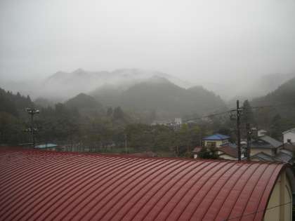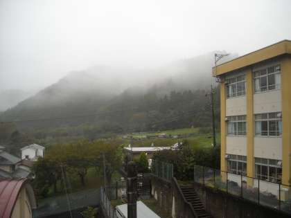 遠くの山は雲がかかって見えません!近くの山も霞んでいます。
