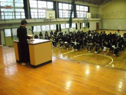 最初に学年主任の粕谷先生から注意がありましたが、みんな立派な態度で聞いていました。