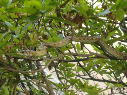 一昨日、となりのヒマラヤ杉のはるか上のほうに逃げた蛇であろうと思われます。