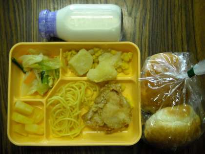 丸パン&バターロール・フライドチキン・ペペロンチーノ・コーンポテト・