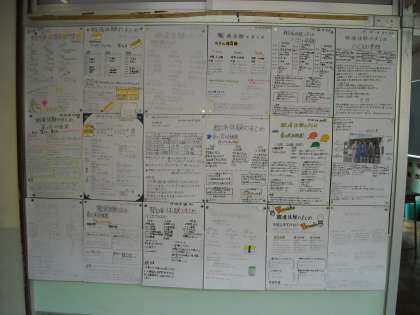 9月に行った職場体験のまとめを班ごとに壁新聞にして廊下に掲示しました。
