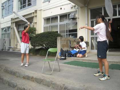 タオル振りの基礎練習を繰り返している生徒もいます。