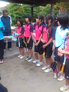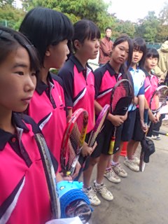 今日は有明テニスの森で女子の都大会団体戦が行われています。恩方中学校は1回戦不戦勝なので、緒戦が昼過ぎになってしまいました。