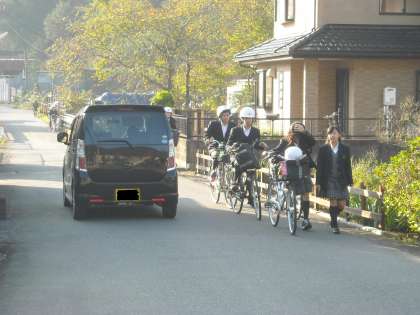 大型のバスやトラックも通るので交通ルールを守って登下校しましょう!
