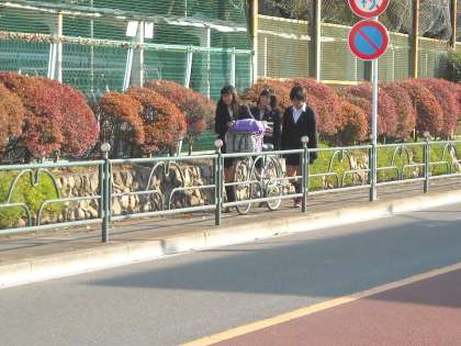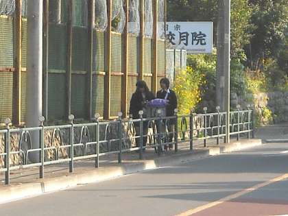 そのまま陣馬街道を直進して正門まで挨拶に来てくれる生徒もいます。