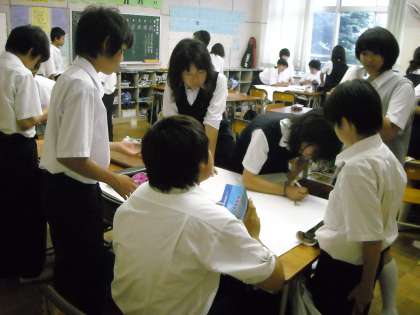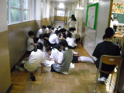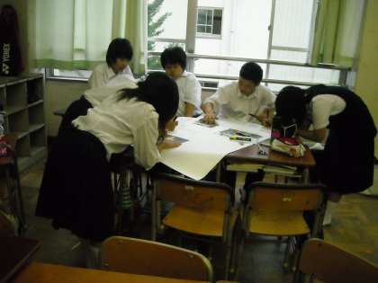 校外学習のまとめとして班ごとに壁新聞を作っています。