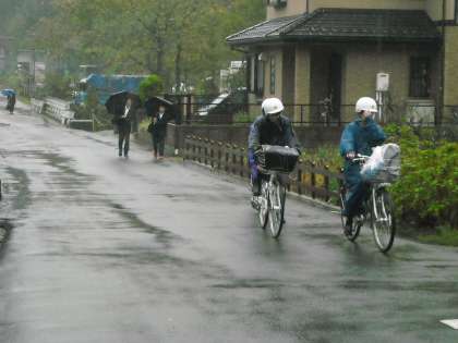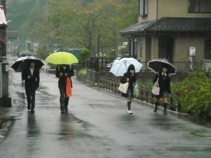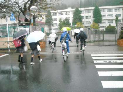 今日も子供たちは傘とカッパで元気に登校して来ます。