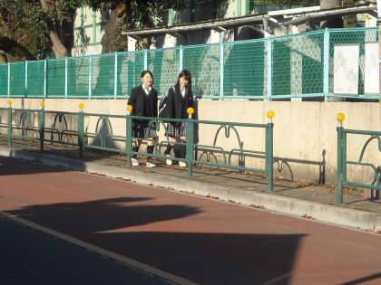 上からも徒歩や自転車や車で大勢が登校してきます。