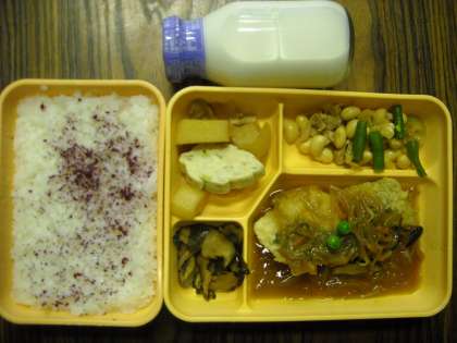 ゆかりごはん・白身魚の野菜あんかけ・大豆と鶏の中華炒め・