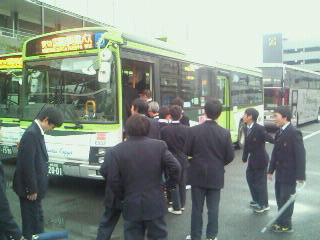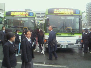 バスに乗って学校に向かいますが、事故のあった三小の前は通行止めでした!
