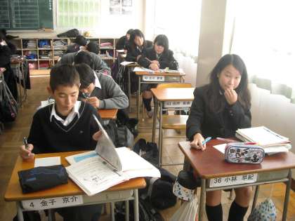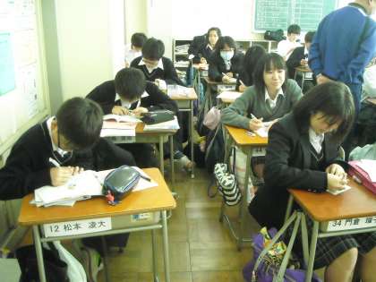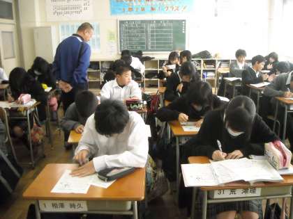 期末試験直前で、プリントの復習問題に取り組んでいました。