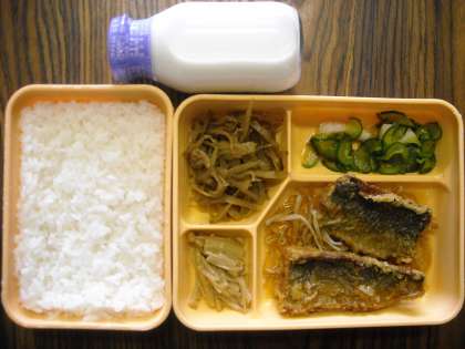 ごはん・にしんのかば焼き・いかときゅうりの中華和え・鶏とごぼうの炒め煮・なめたけ