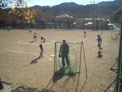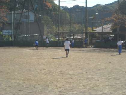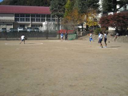 男子は校庭でソフトンボールです。狩野先生も参加していました。