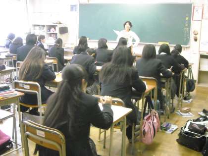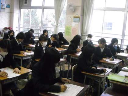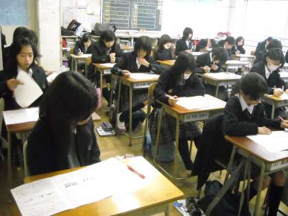 女子は教室で試験返却と答えの確認をしていました。