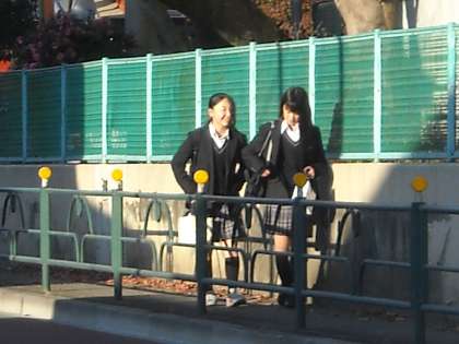 上からも徒歩や自転車車の送迎で大勢が登校して来ます。