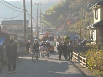 大型のトラックやバスも通るので十分注意が必要です。