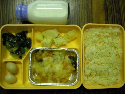 キャロットピラフナスのミート焼き・リヨネーズポテト海草サラダ