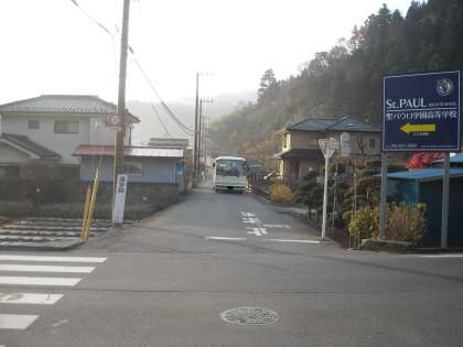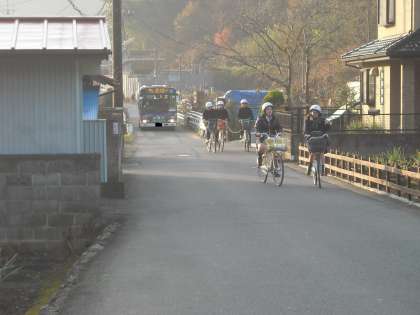 狭い道なのに大型のバスやトラックも通ります。