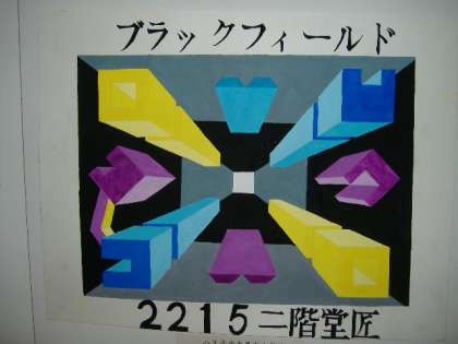 透視図法や投影図法を活用した平面構成と、レタリングによる文字のデザインの総合的作品です。