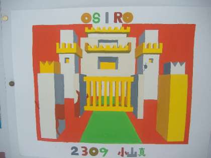 透視図法や投影図法を活用した平面構成と、レタリングによる文字のデザインの総合的作品です。