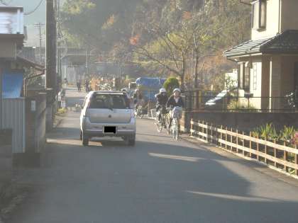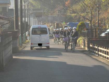 正門前の通りは交通量が増えています。