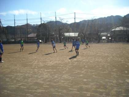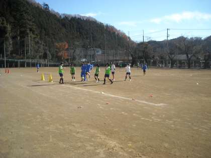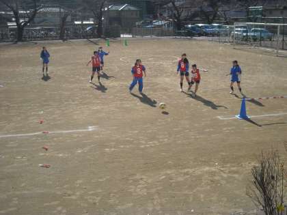 女子は校庭で3か所に分かれてミニゲームをしています。