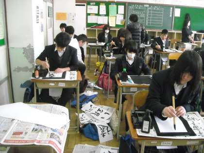 本来は正月2日の行事ですが、学校の初日に行いました。