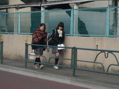上からも徒歩や自転車や車の送迎で大勢が登校してきます。