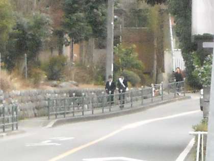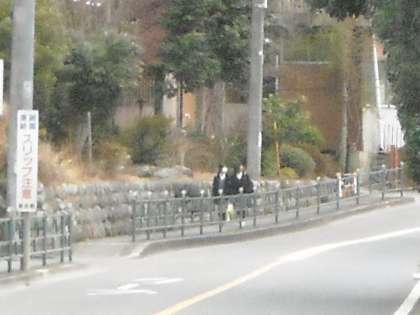 徒歩の生徒は神馬街道を直進してくるとガードレールがあるので安全です。