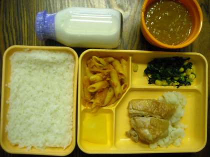 ごはん・カレー・照焼チキン・じゃがベーコン・ほうれん草とコーンのソテー・