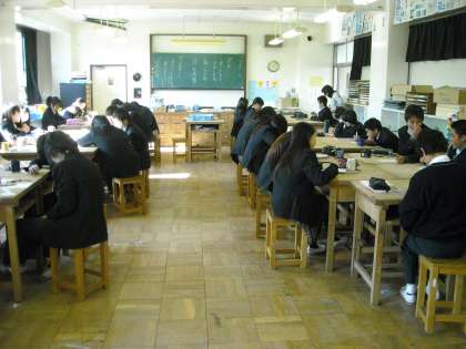 授業風景1年2組−美術