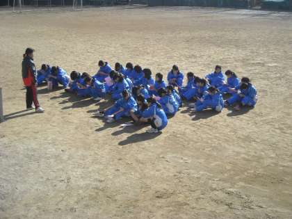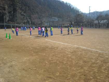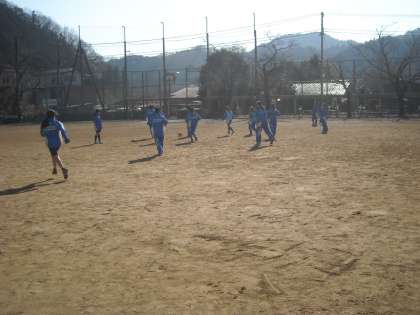 女子は校庭でナデシコを目指してサッカーに興じていました。