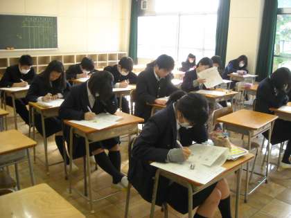 視聴覚室では公立高校入試の過去問に取り組んでいました。